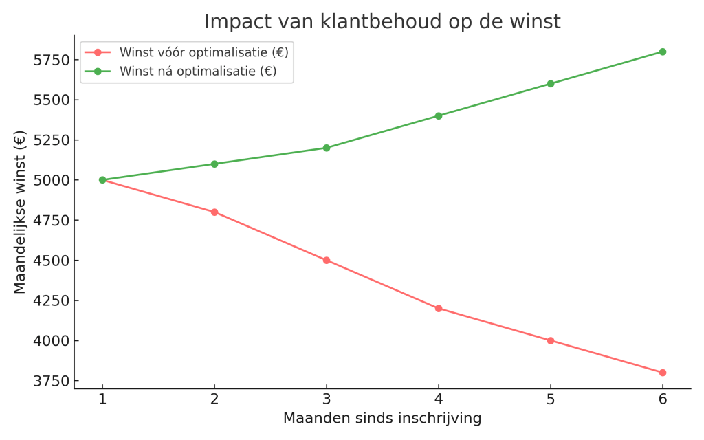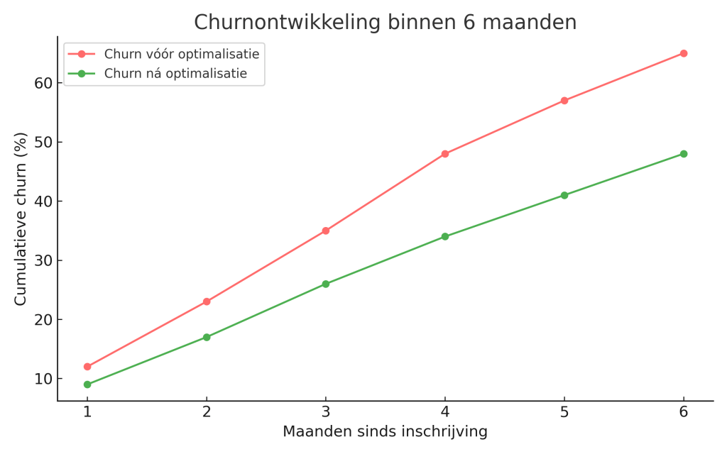 ✔ De churn na zes maanden daalde van 65% naar 48%.